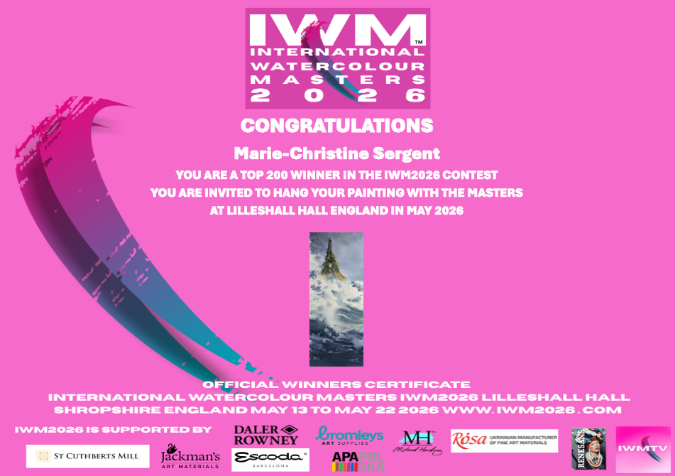 Quel bonheur d’être à nouveau sélectionnée dans ce festival dédié à l’aquarelle — et avec cette création qui me tient particulièrement à cœur.